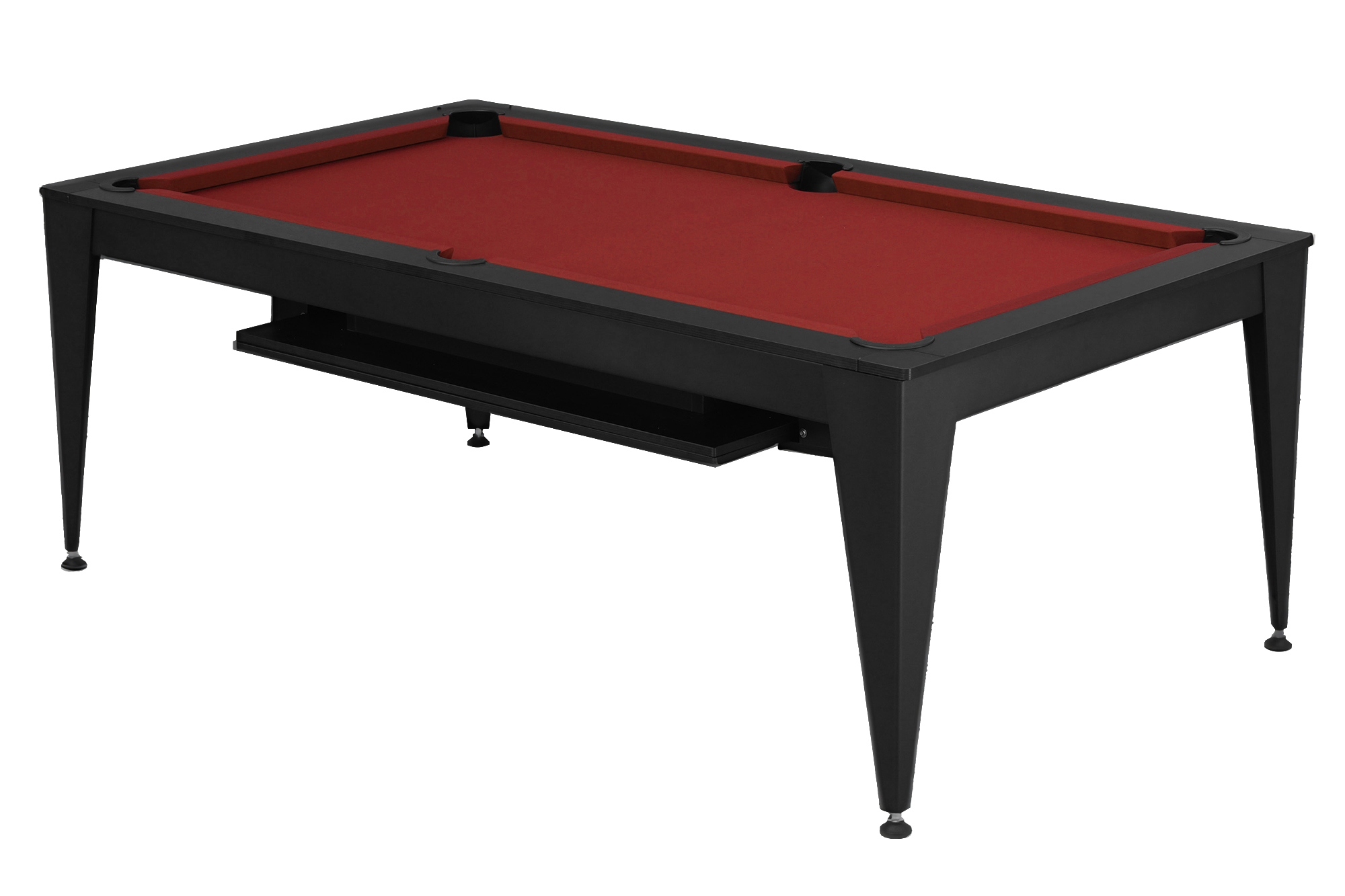 Praktisch integriert: Unter dem Tisch befindet sich eine Ablage, die eine unauffällige Aufbewahrung der Abdeckplatte sowie Ihres Billardzubehöres (Queues, Kugeln, Aufbauhilfen usw.) ermöglicht.