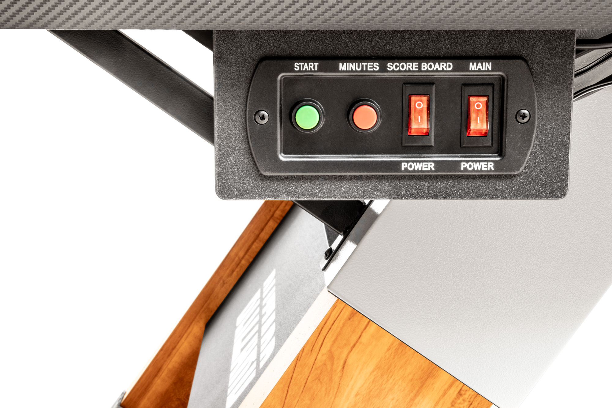 The Blizzard air hockey table is built with tough hardwood legs which gives it outstanding stability. It features a big 7 ft. playing field. 4 players have enough space to play comfortable together. Due to the leg levellers, the table can be exactly straight aligned. A strong blower lets the puck slide on an air cushion with fast speed.