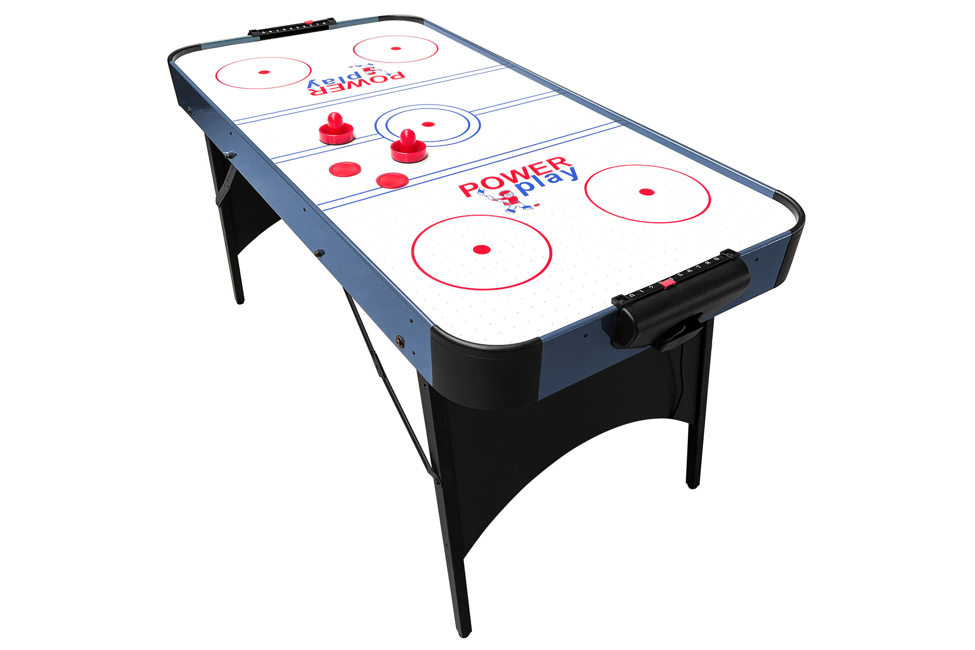 Simply mount the goals, plug the table into the socket and you're ready to play. And after the game, the air hockey table can be easily folded up and stowed away to save space.