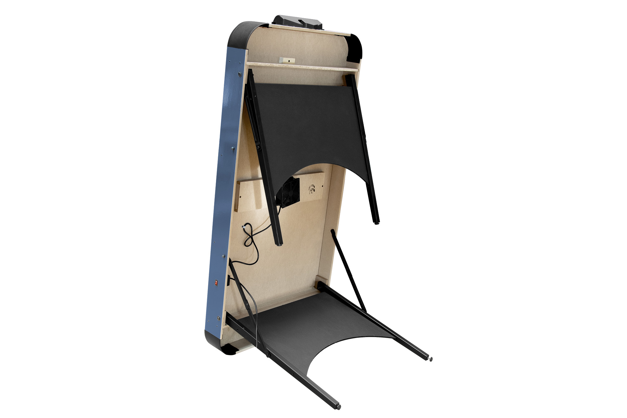 Many air hockey tables that look similar at first glance are supplied with pressboard legs. We use lacquered hardwood legs. These are much more stable and durable when folded frequently.