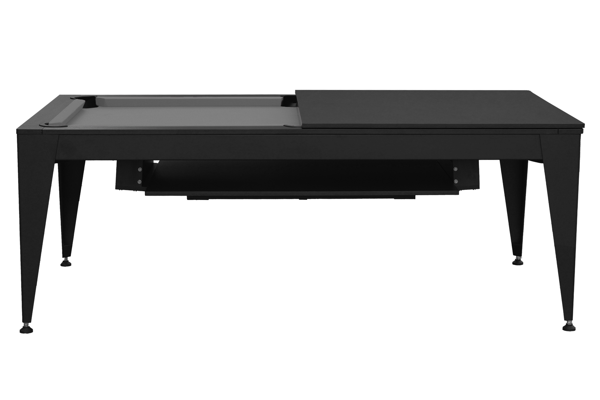 Conveniently integrated: Below the table, there is a storage compartment that allows for discreet storage of the cover plate as well as your billiard accessories (cues, balls, assembly aids, etc.).