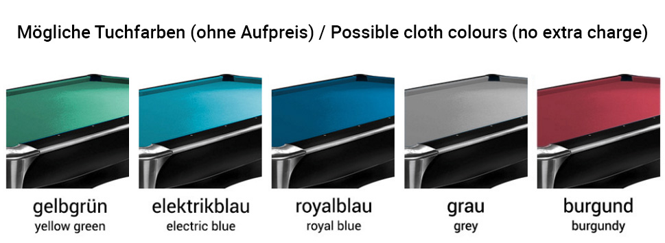 Both cloth types are certified tournament pool cloth and consist of a combination of cotton and nylon. Since the Simonis 760 has a relatively higher nylon amount, the rolling properties of the balls (under otherwise identical external conditions such as humidity, temperature, etc.) are slightly faster.If you only have the pool table delivered and do not order a set-up service, the cloth selected under Cloth Change (not available for every pool table!) Will only be included in the delivery. In that case you must ensure yourself, that the billiard table and the cushions will be covered with the cloth.